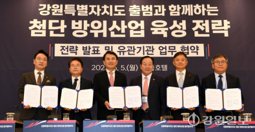김진태 지사는 “반도체, 바이오·헬스, 미래모빌리티, 미래에너지, 푸드테크 등 5대 미래산업에 이어 여섯 번째 미래산업이 된 첨단방위산업을 잘 준비하겠다”고 밝혔다.