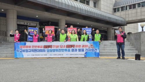 최민혁 강원교육공무직본부 정책국장은 “사측이 제시한 기본급 인상안은 월 6만6,000원에 불과해 물가상승률과 업무 강도를 고려했을 때 턱없이 부족하다”며 “정규직과의 임금격차가 점점 더 벌어지고 있어, 차별을 해소하기 위해 총파업이 불가피하다”고 말했다.