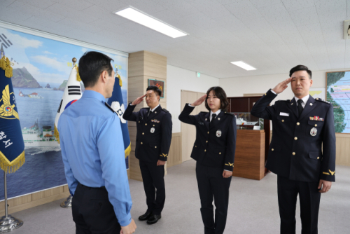 동해해양경찰서(서장:김환경)는 3일 동해해경서에서 ‘가족과 함께하는 경찰관 특별승급 및 승진임용식’을 개최했다. 이날 임용식에서는 특별승급 1명, 경위 2명, 경사 1명 등 총 4명이 특별승급과 승진의 영예를 안았다. 승진자의 배우자 등 가족들이 함께 참석해 축하의 자리를 빛냈다.