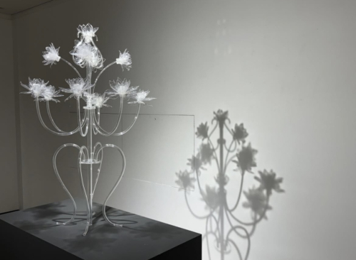수직적인 기념비의 형태를 띠는 작품들은 ‘없음’을 통해 ‘있음’을 증명하고자 한 작가의 시도다. 내면의 동요가 작품 속 투명한 꽃들로 형상화돼 피어나는 과정은 부재의 현존을 강렬히 각인시키고 기억을 불러일으킨다.