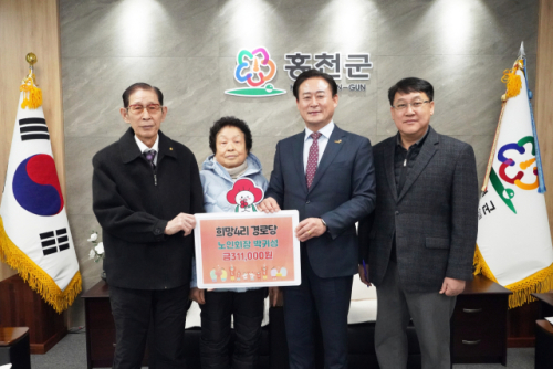 홍천읍 희망4리 경로당(회장:박귀성)은 10일 홍천군청을 방문해 이웃돕기 성금으로 31만원을 기탁했다. 이번 성금은 회원들이 십시일반으로 모아 마련했다.