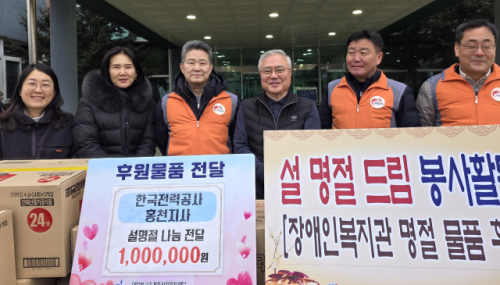 한국전력공사 홍천지사(지사장:이욱희·지회위원장:오현석) 사회봉사단은 10일 홍천군장애인복지관을 방문해 100만원 상당의 생필품을 후원했다. 이는 직원들의 성금으로 마련됐고, 재가 장애인 87가정에 전달될 예정이다.